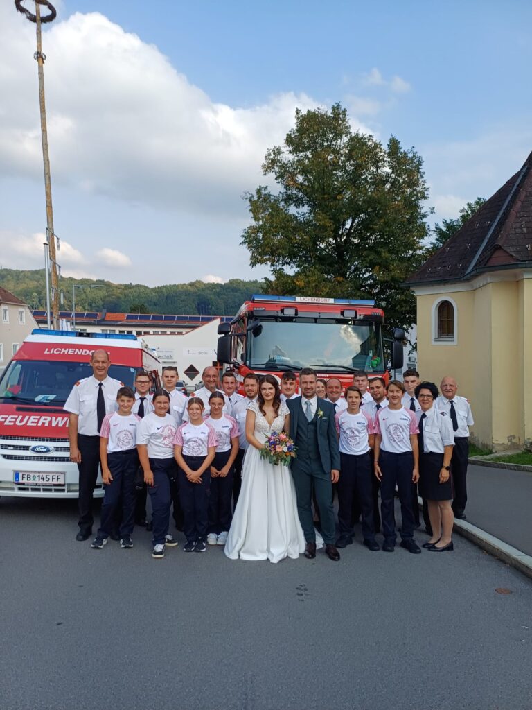 Die Kameradinnen und Kameraden der FF Lichendorf gratulieren unserem Kameraden Johannes Hirmann und seiner frisch angetrauten Ehefrau Julia herzlich zur Hochzeit!